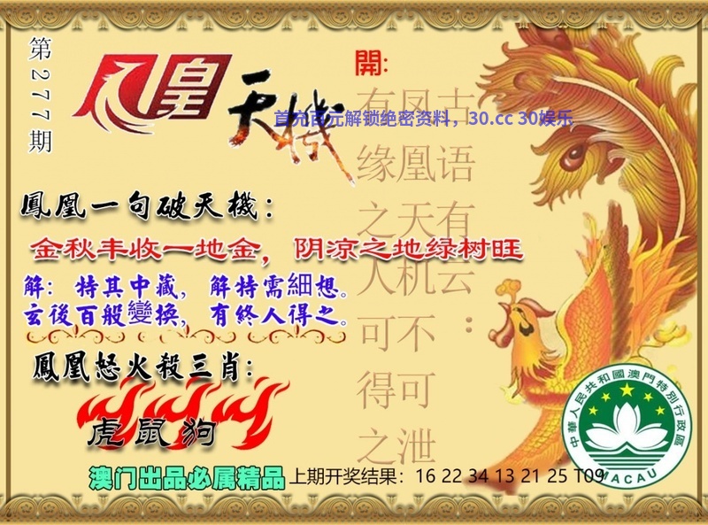 277期:三肖 | 猪虎鸡 | 虎16中 |